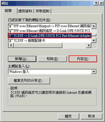 【控制台 \ 網路】開啟網路組態頁面.